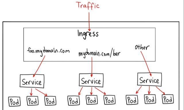 Ingress是推荐在生产环境使用的方式,它起到了七层负载均衡器和Http方向代理的作用,可以根据不同的url把入口流量分发到不同的后端Service,外部客户端只看到http://foo.bar.com这个服务器,屏蔽了内部多个Service的实现方式,采用这种方式,简化了客户端的访问,并增加了后端实现和部署的灵活性,可以在不影响客户端的情况下对后端的服务部署进行调整 其部署的yaml可以参考如下模板: