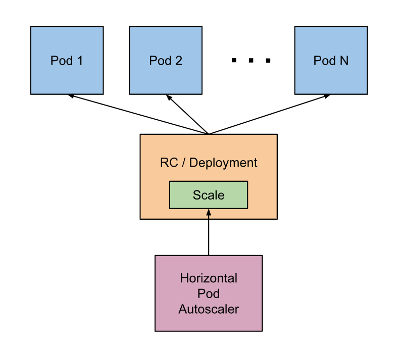 kubectl scale 命令可以来实现 Pod 的扩缩容功能,但是这个毕竟是完全手动操作的,要应对线上的各种复杂情况,需要能够做到自动化去感知业务,来自动进行扩缩容,为此Kubernetes 也为我们提供了这样的一个资源对象:Horizontal Pod Autoscaling(Pod 水平自动伸缩),简称HPA,HPA 通过监控分析一些控制器控制的所有 Pod 的负载变化情况来确定是否需要调整 Pod 的副本数量,这是 HPA 最基本的原理: